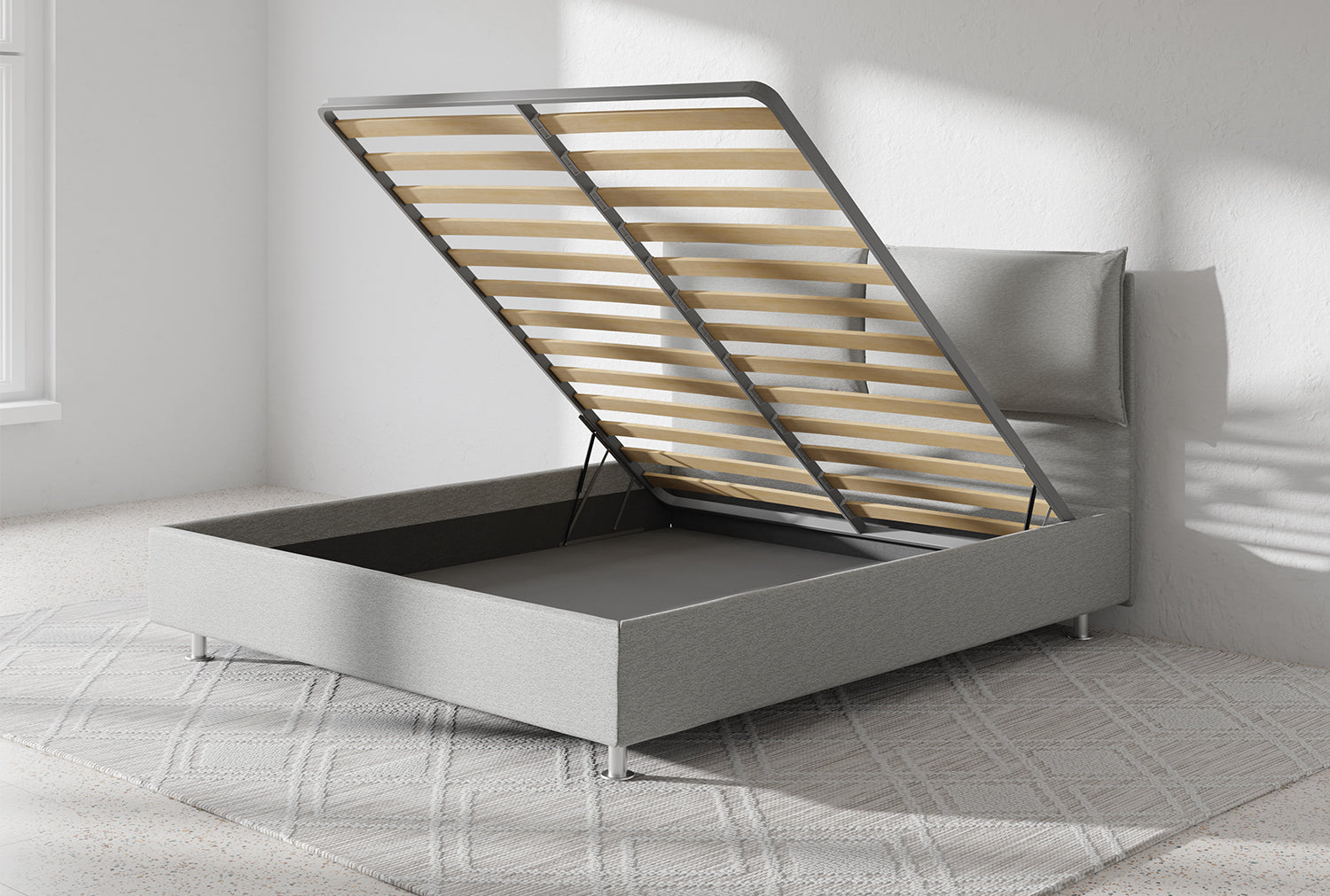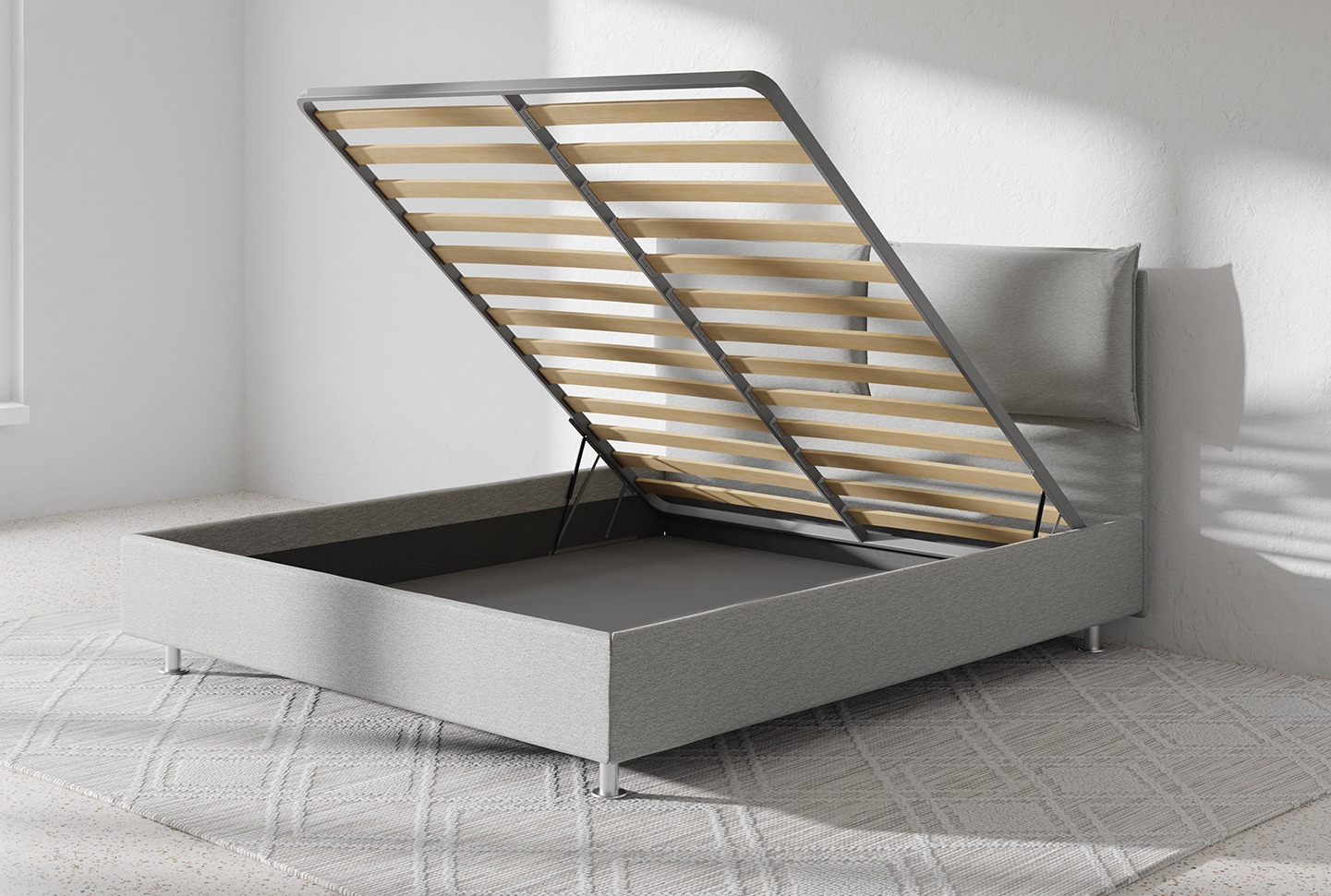 Η βάση κάτω από το στρώμα παρέχει ιδανική υποστήριξη, βελτιώνοντας την άνεση και παρατείνοντας τη διάρκεια ζωής του στρώματος. Ο μηχανισμός με αμορτισέρ επιτρέπει εύκολη ανύψωση και γρήγορη πρόσβαση στον αποθηκευτικό χώρο, προσφέροντας επιπλέον χώρο για την οργάνωση των προσωπικών σας αντικειμένων.